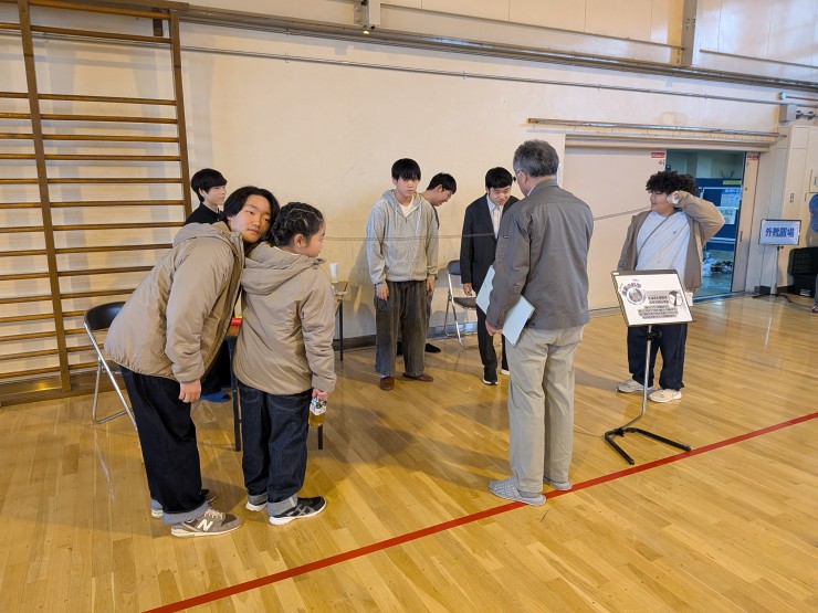 ・札幌日大高のロケット担当の方に重力と遠心力について息子が質問したら丁寧に教えてくれました。